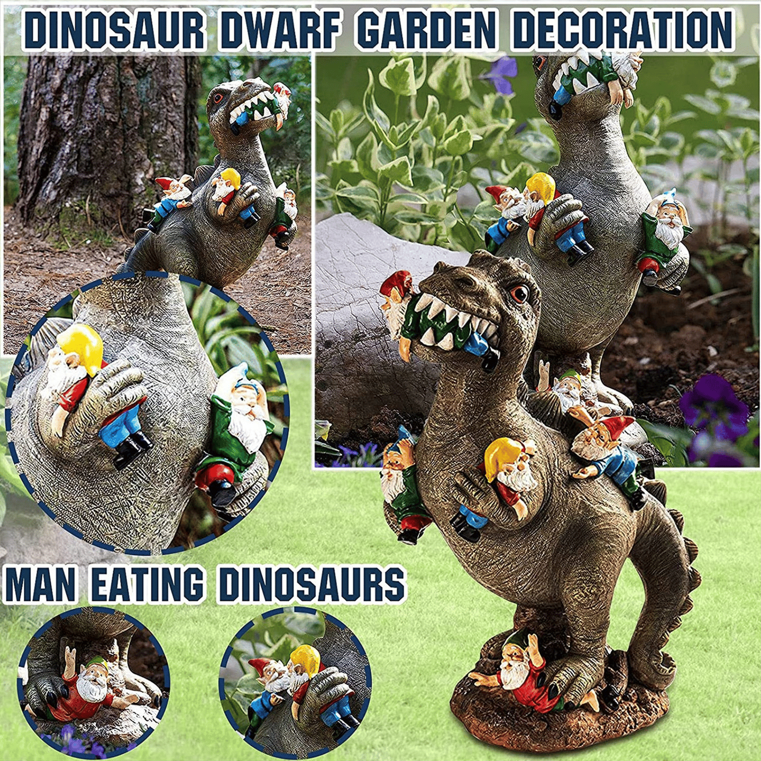🦖【Dinosaur】Your search for the perfect gift for every garden or house is over. Everyone will love this cute original dinosaur-eating gnome design. High quality handcraft made from durable resin material.